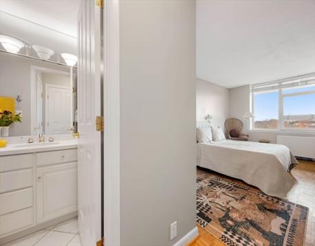 POSSIBLE SELLER FINANCING! Rare 1 bed, 1.5 bath, 9th-floor unit with a private balcony and sweeping skyline Boston city-views (even lying in bed)! Few apartments enjoy this outlook — and even fewer are 1-bedrooms — making this residence truly unique. The open living/dining area for easy living. Hardwood and tile throughout. Kitchen features custom cabinets, granite counts and stainless appliances. The large bedroom includes custom closets & en-suite bath. Residents enjoy 24-hour concierge, pool, and community spaces. The fitness center is being fully renovated with state-of-the-art equipment, adding even more value. Buyers will also appreciate the well-managed condo association with strong reserves. Prime Chestnut Hill location near The Street, walk to Wegmans, Life Time, The Capital Grill, and more. The T stop in front of the building.