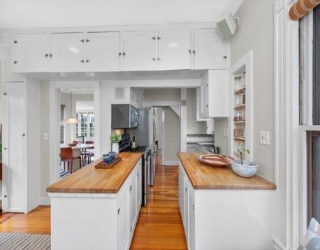 In the heart of Newton Highlands, this Victorian offers immediate proximity to Crystal Lake and the "T" stop to downtown Boston. Car not needed for local errands, evenings out at pubs and restaurants, or for getting to the elementary school. The first floor features an eat-in-kitchen with stainless steel appliances, butcher block counters, and oversized south-facing windows to the beautiful garden with established perennials and shrubbery. Completing this level are a dining room with bay windows; an oversized living room with two areas for seating, a fireplace, and built-ins; and powder room. The second floor has a full bath, a main bedroom with walk-in closet and sun-drenched sitting area, two other bedrooms, and an extra walk-in closet in the hall. The partially finished basement has a full bath (w/ shower), a family room/home office, and storage. A single-car detached garage and a delightful patio with hanging bittersweet & trumpet vines complete this enchanting home.