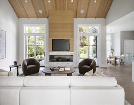 Scale, quality, and thoughtful design define this 6BR, 6.5BA new-construction home in the heart of Waban. Built by a premier local builder, it pairs timeless architecture with a light-filled open layout ideal for entertaining and everyday living. Vaulted ceilings, walls of glass, and seamless indoor–outdoor flow set the tone. The chef’s kitchen with custom cabinetry and high-end appliances opens to the family, dining, & living rooms. A first-floor suite offers flexibility for guests or a private office. The primary suite includes vaulted ceilings, a balcony, custom dressing room, and spa-like marble bath. Three additional en-suite bedrooms feature vaulted ceilings & designer finishes. The lower level features a guest suite, fitness room, wine room, bar, media/den, & office. The fenced-in yard provides privacy for play & outdoor living. Near top schools, Waban Village, the T, and commuter routes - an exceptional home in a beautiful neighborhood setting within a coveted Newton location.