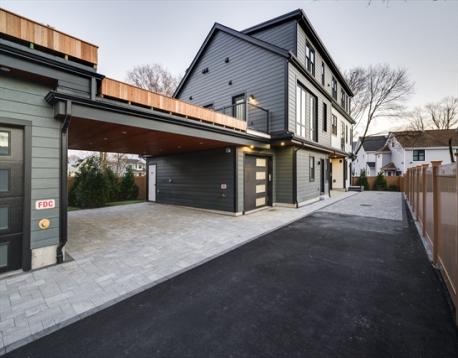 LAST UNIT LEFT! Elegant new construction 4 bed, 3.5 bath townhome with 2-car garage parking and private yard. Thoughtfully designed with high-end finishes throughout, this home blends modern style with everyday function. The open-concept main level features a chef’s kitchen with integrated appliances, custom cabinetry and built-ins, a sleek linear fireplace, and striking arch details, along with a stylish wallpapered half bath and custom built-in mudroom. Upstairs, find 4 spacious en-suite bedrooms including a luxurious primary suite with walk-in closet and spa-inspired bath, plus laundry. The finished lower level offers versatile space ideal for a gym, media room, or playroom. Built to live like a single-family, this property provides comfort and convenience in a prime location near parks, the Charles River trail, neighborhood shops and restaurants, and with easy access to Watertown and Cambridge.