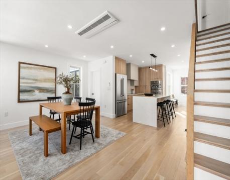 Welcome to 298 Cabot Street, a brand-new luxury townhome in the heart of Newton. Approximately 2,865 sq ft of refined living across four levels, featuring 4 bedrooms, 4.5 baths, and an office. The open-concept main level showcases a chef’s kitchen with custom Metropolitan cabinets, Thermador appliances including a double oven, and quartz countertops, opening to a sun-filled dining area with access to a private patio and yard. Upstairs, the serene primary suite includes custom closets and a spa-like bath with heated floors. The lower level, plumbed for a wet bar is an ideal space for a family room, and the finished attic provides flexible space for a bedroom or a gym. Designed with tiles and finishes curated by Kristin Conrad Interior Design, each home includes a detached carport, an additional parking space with EV outlets, and high-efficiency ductless HVAC system with 8 zones. Convenient to schools, parks, shops, and major routes.