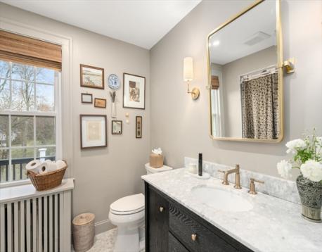 Inviting exquisitely renovated colonial home sited in a coveted location in Newton Center. The perfect blend of timeless elegance with exceptional modern luxury. Gleaming hardwoods flow through a light-filled, seamless floor plan. Elegant living room w/focal fireplace, private office w/custom built-ins. The stunning chef’s kitchen has a large island & top-end stainless appliances with adjoining dining area. Chic half bath, designer mudroom + adjoining laundry-adds style & convenience. The covered back deck overlooks a lush, manicured yard—perfect for entertaining or serene relaxation. Upstairs is home to 3 generous bedrooms including a serene primary suite w/walk in closet & luxe spa-like bath. Sun-drenched roof top deck is the perfect place to enjoy the sunsets. Luxury exudes in every thoughtful space. Full basement, detached garage space, and a prime location near top schools, Newton Center's shops & dining and T station. A truly exceptional home!