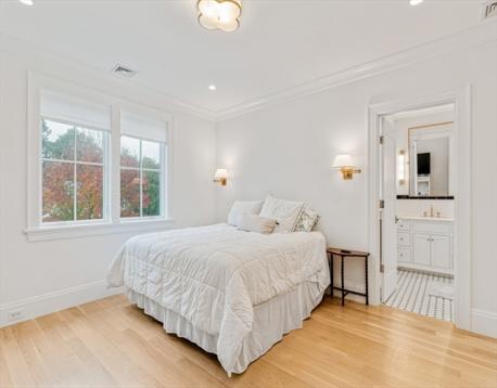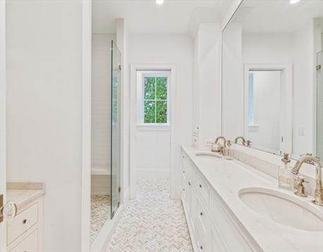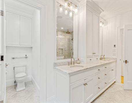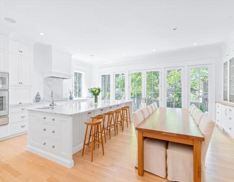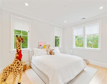 Don’t miss this rare opportunity to own a 2023 custom-built Modern Farmhouse in Newton Centre, where timeless design meets modern luxury. Sunlight pours through expansive windows, illuminating white oak floors and soaring 9' plus ceilings that create a warm, welcoming atmosphere. Open, airy rooms flow seamlessly from elegant living and dining areas to a designer kitchen that anchors the home in both style and function—perfect for relaxed family living or sophisticated entertaining. The private primary suite features a spacious walk-in closet and luxurious spa bath. Three additional bedrooms are upstairs, while a first-floor bedroom/office and lower-level guest suite offer versatility for today’s lifestyle. Smart home features, 5.5 spa-inspired baths, a finished walkout lower level, 50-ft wraparound porch, and a two-car garage with brick driveway complete this exceptional offering near houses of Worship, Newton Center, Newtonville & major routes. Mason Rice/Brown/Choice of High School.