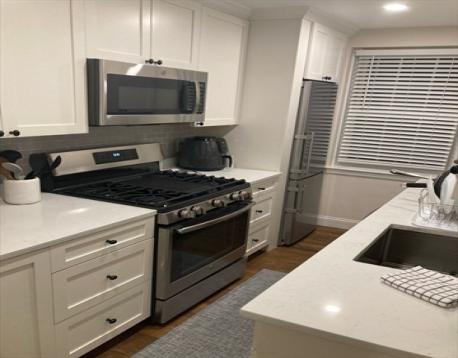 Fabulous & beautifully renovated! This sun-filled one-bedroom, one-bath condo is ideally situated directly across from Boston College’s main campus and just steps from the Green Line B stop. Perched on the top floor, the unit features a sleek white galley kitchen with stainless steel appliances, an open-concept living and dining area anchored by a charming decorative fireplace, a full bath, and a generously sized bedroom. Additional highlights include an in-unit washer/dryer (plus convenient coin-operated laundry in the basement), custom closets, and one deeded outdoor parking space. Enjoy effortless access to local shops, restaurants, public transportation, and all that Boston has to offer.