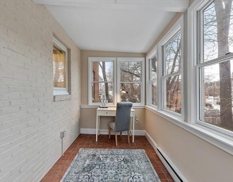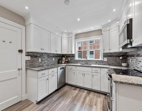 Welcome to this beautifully renovated & meticulously maintained 1st-floor, 3-bed condo near the highly-regarded Cabot School & Edmands Park trails. Step inside this inviting open-concept dining & living area highlighted by a cozy fireplace. The home features refinished oak hardwood floors, recessed lighting, newer Andersen windows & fresh paint throughout creating a bright modern aesthetic. The updated kitchen boasts SS appliances, quartz countertops, & stylish tile backsplash. The renovated bath offers a tub & shower with fully tiled surround. Enjoy the convenience of in-unit laundry & heated enclosed sunroom, perfect for an office, playroom, fitness or relaxation space. Additional perks include a 1-car garage plus deeded parking space, a fully-fenced level backyard with patio, separate utilities, & plenty of storage. Move-in ready & in a great Newton location, close to shopping, dining, trains & all major routes for commuting. Open Houses Sat/Sun 12-2 offers due Tuesday 12/2 by noon.