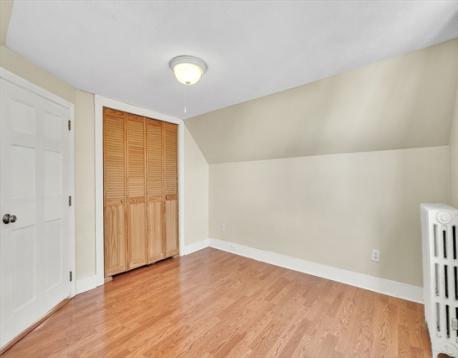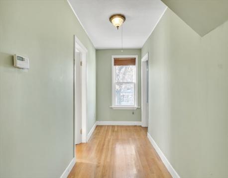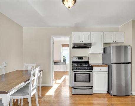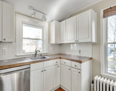 Sunny two level condo with 3 bedrooms in a well located small association in Newton’s Nonantum village. The home begins on the second floor with a bright living room and a spacious kitchen with room for a dining area, white cabinetry, and gas cooking. One bedroom and a renovated full bath with a large shower are on this level. The top floor has two additional bedrooms, a bath with tub, and in unit laundry inside a third bedroom closet, with optional hookups in the common basement if the new owner prefers. Features include solid hardwood floors on the main living level, gas heat converted from oil, and newer windows. Two full parking spaces are located behind the building along with a shared guest space. The common entry features a colorful stained glass window that adds character. The location is close to Lincoln Eliot Elementary, Bigelow Middle School, Newton North High School, the Charles River path, shops, restaurants, parks, the Mass Pike, and public transportation.