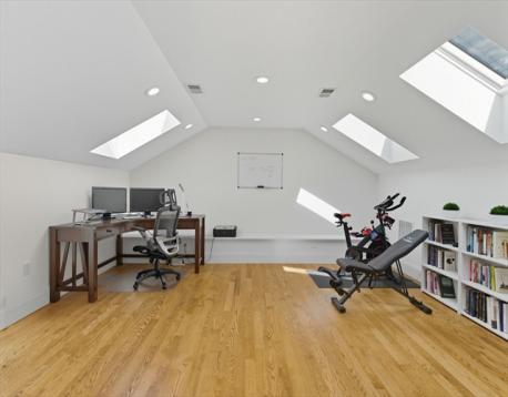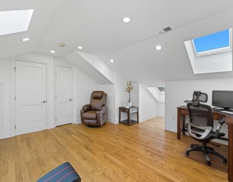 Luxury townhouse living at its finest! Tucked away on a quiet cul-de-sac yet just steps to shops & restaurants at Four Corners and minutes to Newton Centre & Highlands, this home offers both convenience and tranquility. Flooded with natural light, the 4 bed, 3.5 bath residence spans four levels designed for today’s lifestyle. The main level features a stunning kitchen with stone counters, stainless steel appliances, and direct access to a private patio perfect for entertaining, plus dining area and gas fireplaced living room. A convenient front door from the street welcomes guests, while garage entry adds everyday ease. Upstairs, the primary suite boasts a walk-in closet, jacuzzi tub, and shower, plus two bedrooms. A dramatic top floor with 4 skylights is ideal for office, playroom, or lounge. The lower level offers a flexible suite with full bath and garage access. Upgrades include full home security, irrigation, smart garage door, new blinds, and custom paint. Don't miss out!!