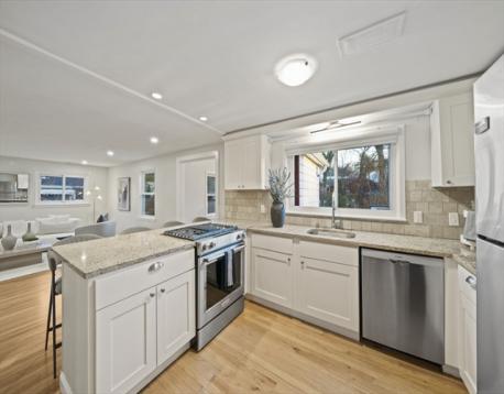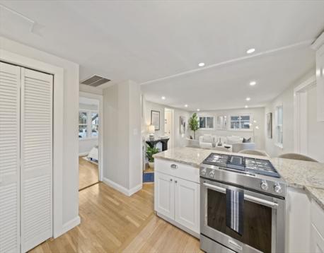 Updated single-story Cape in a highly sought-after Newton Highlands neighborhood. Open-concept living space with a renovated kitchen featuring quartz countertops, stainless steel appliances, peninsula seating, and ample cabinetry. Lots of windows provide an abundance of natural light throughout. Highlights include central A/C, oak flooring, custom closets, recessed lighting, a renovated bathroom, and a decorative fireplace. Enjoy a private, fenced-in level back yard with deck—ideal for outdoor entertaining. Flexible layout perfect for a small family, couple, or those seeking dedicated workspace. Located in a top-rated Countryside school district with easy access to green space, Crystal Lake, and nearby parks. Exceptional commuter location near the MBTA Newton Highlands Green Line station, Routes 9 & 95/128, local shops & Restaurants. Set on a 7,200 square foot lot, the property offers expansion potential.