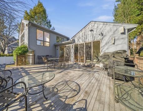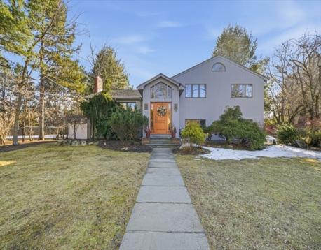 Nestled in sought-after Waban Village, this 1955 Contemporary-style home offers a blend of comfort and functionality, featuring an inviting foyer that opens to a sunlit living room with fireplace, a spacious dining room, and an updated eat-in kitchen with an oversized island and bright breakfast area with French doors leading to a deck overlooking a beautifully landscaped 15,136 sq ft lot with garden and patio; a few steps down is a generous family room along with an office, full bath, mudroom, and access to the attached two-car garage; the second floor offers four bedrooms including a high-ceiling primary suite with walk-in closet and en-suite bath, filled with natural light and an open, airy feel; the finished lower level includes a playroom with fireplace plus laundry, storage, and utility space; major systems updated; conveniently located near Angier School, public transportation, and The Windsor Club.