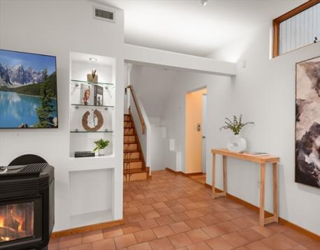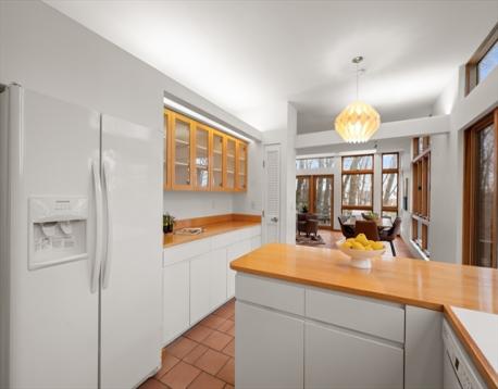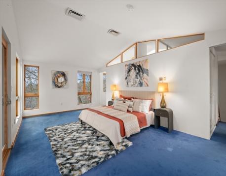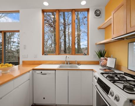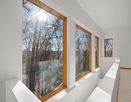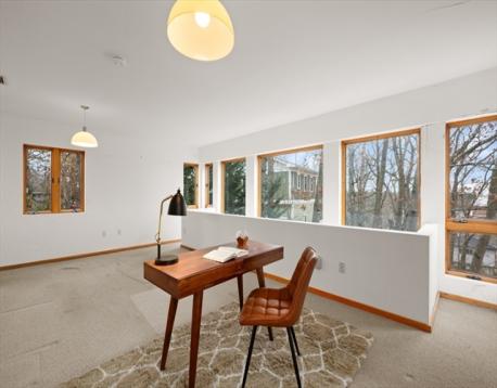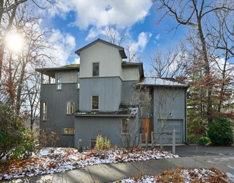 Designed by its architect owner, 55 Grove Hill Park is an exceptionally unique property that is integrated with the landscape and absolutely flooded with natural light. The layout is exciting and functional: enter at the driveway level and go to the first floor for an open living space featuring a dining area, kitchen, and living room. This level truly brings the outside in with two balconies, massive windows, and features a wood stove. This floor is completed by a half bath. One level up, find two good sized bedrooms and a full bath. Half a level up is another sun-filled room that would be a phenomenal workout space, yoga studio, home office, or artist retreat. The top floor features a massive primary suite with a walk-in closet, laundry, and another balcony. Additional heated space in the basement provides storage and a workshop and an elevator provides easy access for all. A little bit of work makes this home your own personal work of art. Offers reviewed 12/23 at 12N.