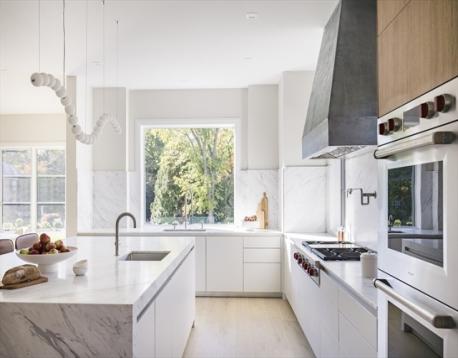 Discover Newton’s finest modern estate, located on the most coveted street in West Newton Hill. This stunning residence spans approximately 9,000 square feet of refined luxury. Expertly designed with meticulous craftsmanship and state-of-the-art construction, the home exudes sophistication and elegance for the most discerning buyer. The main level features a two-story living room with a dramatic fireplace, Venetian plaster, entertainer's dining room, custom lighting, and floor-to-ceiling windows that flood the interior with natural light. The beautifully appointed kitchen is equipped with top-of-the-line appliances, marble countertops, & custom cabinetry. The stunning primary suite offers a fireplace, walk-in closet, & spa-like bath. The home includes six additional ensuite bedrooms, including a main-level suite. Lushly landscaped with an expansive patio w/ room for a pool. The lower level is primed for customization. Elevator, 3-car garage, & sauna complete the home.