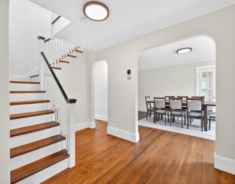Second chance! Previous transaction terminated due to buyer-side issues, not the home. Stately Colonial set on ~1/3 acre in a highly desirable, ultra-convenient neighborhood—where timeless architecture meets thoughtful modern updates. A tiled vestibule entry with full-length sidelights sets the tone, leading into a home rich with character and classic detail. The spacious eat-in kitchen features a substantial island with gas cooktop, ideal for both everyday living and entertaining. The primary suite offers a sunlit walk-in closet and a beautifully appointed ensuite bath with clawfoot tub, separate shower, double vanity, and charming arched windows. Two dedicated home offices—one with private entrance and waiting room with built-ins—offer exceptional flexibility for work-from-home & client-facing use. Spacious backyard complete with large patio and mature trees. Recent upgrades include refinished hardwood floors throughout, updated electrical and HVAC systems, many new Harvey windows,