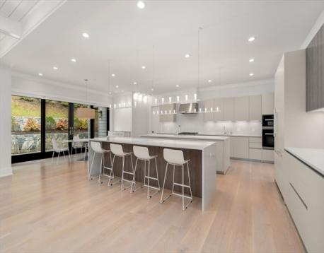 Enter into the magnificent sunny foyer and you will appreciate the premium finishes through out this home. High ceilings, beautiful 10” wide custom white oak flooring, designer light fixtures, custom glass & black steel doors and the custom steel and cable staircase tell the design story. The large eat-in kitchen features custom cabinets and Miele appliances, two 11' islands and walk-in pantry. The 29x27 family room with custom designed coffered ceiling is framed by a wall of glass windows that open out to a patio and professionally landscaped yard. The first floor also features a bedroom suite/office. The second floor has a large primary suite that opens to a balcony and into a spa like bathroom with great vanity space and oversized walk-in shower. The second floor also has three additional on suite bedrooms and laundry. The lower level features a bedroom suite, large playroom, mudroom and 23x36 art studio that was originally a large garage and can easily be converted back.