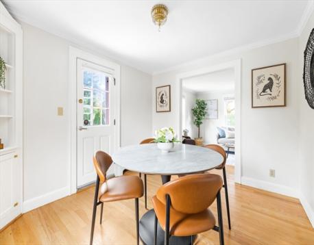 Updated two bedroom de-leaded condo/townhome in the heart of Auburndale! The lovely unit features freshly painted and refreshed interior with beautiful hardwood floors. On the main level there is a sunny living room that opens to a formal dining room with built-in cabinet and door to the side deck. The modern kitchen has white cabinets, sleek black granite countertops and stainless steel appliances, including a new refrigerator. Upstairs there's a full updated bathroom and two spacious bedrooms. The finished walk-out lower level has laundry, a half bath and bonus room. Exclusive use, fully fenced yard with newer outdoor deck and railings, privacy hedges, raised garden bed. Exterior completely redone siding. Garage parking plus two tandem spaces outside. Recent updates done include new windows, updated bathroom, updated electrical, water heater, range, Nest thermostat. Short distance to the grocery store, Auburndale Square, West Newton, new bike trails, schools, access to 95 and train.