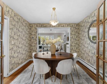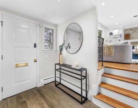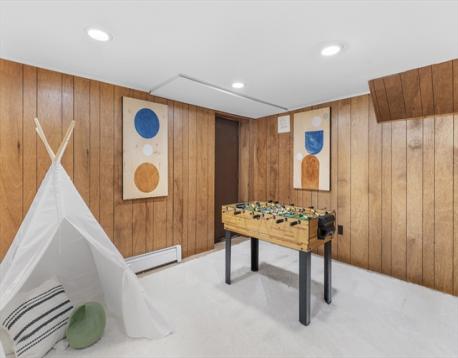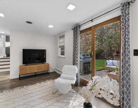 Situated on a coveted South Side Newton street surrounded by multi-million dollar homes, this 1967 split-level offers space, flexibility, and opportunity. Set on a generous 15,000 sq ft lot, the home features 4 bedrooms, 2.5 baths, and an oversized two-car garage leading to a mudroom and updated half bath (2020). The main level boasts a beautiful living and dining room anchored by a stunning stone-flanked fireplace, with French doors opening to a versatile office or additional living space. The kitchen includes an island with bar stools. Upstairs offers four bedrooms, including a primary suite with a large walk-in closet and bath ready for your personal touch, plus an updated full bath (2020). The lower level features a spacious den with direct access to the patio, and a basement ideal for play or additional living space. Prime location close to everything Newton has to offer.