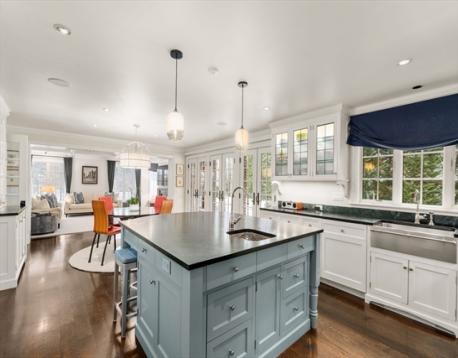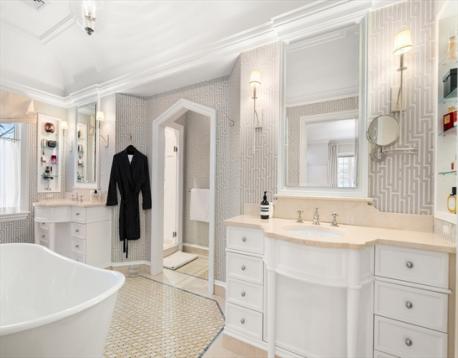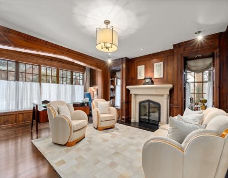 Thoughtfully rebuilt from the ground up, this distinctive brick residence seamlessly blends architectural authenticity with modern luxury. A gracious foyer leads into a light-filled main level with an open layout connecting the gourmet kitchen, fire-placed family room, elegant dining rm, and private library, ideal for everyday living and entertaining. The well-appointed kitchen has top-of-the-line appliances, custom cabinetry, and a large center island. A private sun-filled first-floor guest suite is tucked away. Second level features four ensuite bedrooms, including a luxurious primary suite w/ terrace. Third floor has an office/large playroom. Finished lower level is a highlight with an expansive media/game room, gym, wine cellar, half bath, and abundant storage. Custom mudroom off the two-car garage w/ heated driveway. Beautifully landscaped yard is a private retreat, well designed for easy outdoor living, w/ beautiful patio, gas fire pit, outdoor TV, and separate dining area.