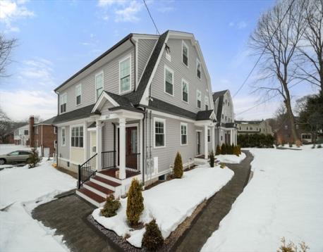 LAST REMAINING of these new construction townhomes in Newton Highlands - offering immense quality and space across four levels. This home features an open first floor perfect for friendly gatherings adorned with its natural gas fireplace, ample kitchen, spacious layout and full bath. Upstairs you'll find the primary suite complete with a large soaker tub perfect for unwinding after a long day - two additional bedrooms and a full guest bath complete this level. Heading up to the third floor, five radiant skylights embrace an oversized bonus space ideal for whatever your heart desires. Below is an oversized bedroom with ensuite bath and walk in closet, exiting to an amply large garage for parking and all your storage needs. With Newton Centre, public transit, Chestnut Hill shops, major expressways, and top-tiered schools all at your doorstep, this single-family-alternative is surely not to be missed.