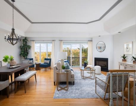 This beautiful sun-filled townhome overlooks the Newton Commonwealth Golf Course with a wide view of the city skyline. This tucked away oasis in the coveted Fairways association blends the convenience of condo living with the feel of a single family home. This prime location offers easy access to major commuting routes, the T & Chestnut Hill Reservoir. A terraced private garden welcomes you to the property while a spacious foyer boasts sight lines for miles. The dramatic living/dining area offers a 10.5’ tray ceiling, fireplace & private balcony with sweeping views. An eat-in kitchen has quartz counters and sliders to a private patio with lush gardens. A large study & powder room complete this level. The luxurious bedroom level has a grand primary suite with 3 oversized closets plus a spa-like en suite bath with a jacuzzi tub & sliders to a private deck/garden. This level also offers a spacious auxiliary bedroom with sliders accessing the deck/garden, and the 2nd full bath & laundry.