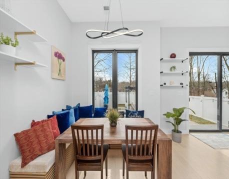 Dwell in fine design, privacy & opulence in this 2023 townhouse rendering the pleasures of single family living. The stunning Kitchen offers stone counters, top-of-the-line appliances, high-end fixtures & a large waterfall island leading to a dining & living room area featuring a modern stone fireplace. The high ceilings & oversized style windows offer an abundance of natural light from three exposures. Upper floors host private quarters that include a Master Suite, deluxe designer bath offering a spa-like experience & a generous custom walk-in closet; two additional Bedrooms, an oversized deck, a full Bath, plus a laundry room. The lower level offers an additional living room, bedroom, storage & a full bathroom, perfect for a playroom, a home gym or guests. A private fenced yard, an outdoor pizza oven & a garage complete the package. Situated in an amazing Newton Corner commuter location. 10 min to Boston, shops, restaurants, parks & schools. OH SAT 3/28 & SUN 3/29- 12:30-2:00PM