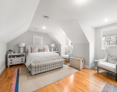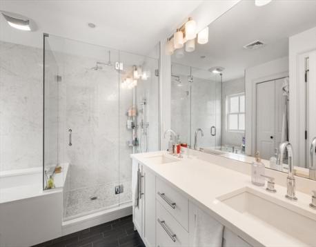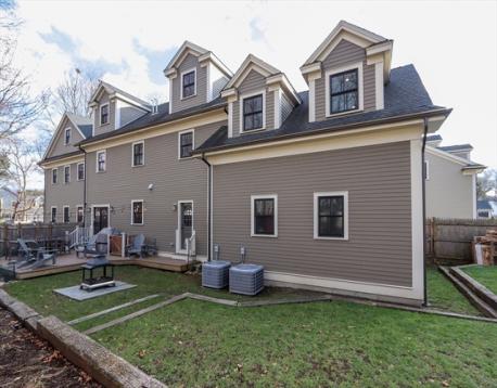 WOW! One of the largest and most unique townhomes on the market! Tucked away on a quiet cul-de-sac, this home lives like a single-family with modern luxury throughout. The open-concept main level features a stunning kitchen with large island and high-end appliances flowing into spacious dining and living areas with direct access to a large private yard. Office, full bath, and direct entry 2-car garage complete this level. The second floor offers a primary suite with walk-in closet and spa-like bath, plus two bedrooms, full bath, and laundry. Third floor suite with living area, bedroom, and full bath. Finished lower level with large living space, 5th bedroom, and full bath. Walk to Peirce School, parks, Express bus, commuter rail, shops, and restaurants with easy access to the Pike and Route 95. This is truly one of the best and a must see!