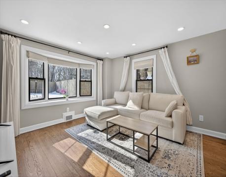 Beautifully maintained and truly move-in ready, this Newton Highlands Colonial blends classic charm with thoughtful updates. A tiled entry with custom built-ins opens to a bright living room with flowing seamlessly into the dining room and spacious family room, all featuring hardwood floors. The updated kitchen offers quartz countertops, stainless steel appliances, and custom cabinetry with ample storage. A dedicated home office with built-ins, half bath, and mudroom complete the main level. Upstairs features two bedrooms, a full bath, and a generously sized primary suite with dual closets and an updated bath. Large bay windows fill the home with natural light and overlook the fenced yard, while a stone patio provides ideal outdoor entertaining space. Recent upgrades include an energy-efficient gas furnace and central air. Ideally located just moments from Newton Highlands Village, Crystal Lake, parks, and the Green Line T, offering exceptional walkability and convenient!