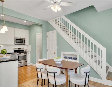 Elegant Victorian townhouse-style condo in desirable West Newton Hill. This sun-filled 2 bedroom, 2 bath home blends period charm with modern updates. There are high ceilings, gleaming hardwood floors, decorative working fireplace, and a modern granite/stainless kitchen with adjoining dining area. On the second floor there is a spacious primary suite with a modern full bath and ample closets, the second bedroom, theseconf full bath, and the laundry room. Highlights include a large private deck with expansive views, updated A/C system, new windows, and two parking spaces. Enjoy a large common yard and basement storage. Ideally located near Peirce School and close to West Newton Square shops, restaurants, and cinema, with easy access to Mass Pike and close to Commuter Rail stop. Do not miss! Showings start on Thursday 10/9 at Brokers tour, 11:30-12:30, accompanied buyers welcome. OH Sat-Sun, 10/11&12, 12-1:30.