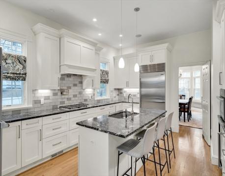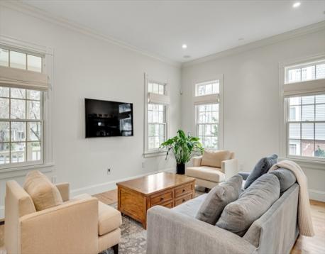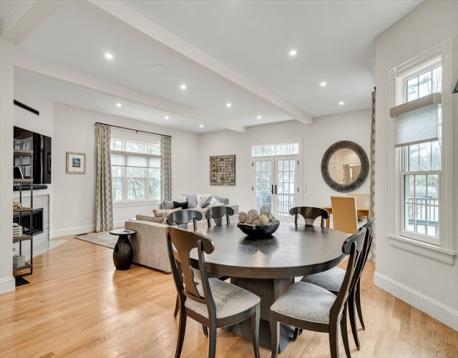 Spacious young West Newton Hill Colonial offering over 5,250 sq ft of living space on a 15,000+ sq ft lot. This home blends classic design with thoughtful updates and has been meticulously maintained, including a renovated kitchen, newer roof, heating and HVAC, Pella windows, and freshly refinished hardwood floors. The main level features a sun-filled family room with fireplace and access to a deck overlooking a large, level, fenced yard, along with a formal dining room, living room, home office, and half bath.The second floor includes a generous primary suite with vaulted ceiling, fireplace, and two walk-in closets, plus three additional bedrooms, one en suite, a full hall bath, and laundry. The third floor boasts a bedroom, full bath, and a spacious bonus room or additional bedroom. The finished lower level offers a mirrored gym and a room with exterior access and full bath and a custom built-in bench and a two-car garage. Close to West Newton Square, commuter rail, and major routes.