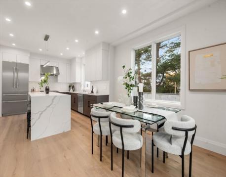Welcome to The Residences at Four Corners, a collection of seven spacious townhomes in the Four Corners neighborhood of Newton Highlands. Crystal Lake, Whole Foods, village shops, Cold Spring Park, and Newton Centre are all nearby, and both the Newton Centre and Newton Highlands Green Line stops are an easy walk. Each home sits above a private heated parking level with direct access to an individual two car garage, also heated. Floor plans feature an open first floor and a first-floor bedroom suite, with four-to-five-bedroom layouts and three and a half or more baths. Kitchens are finished with custom cabinets, Thermador appliances and quartz counters. Two homes include private elevators with direct service from the lower level to the second-floor primary suite. Best of all these homes have gas heat, hot water, cooking and outdoor BBQ hook-ups and every residence offers a fenced private yard with a patio. Ask agent about "Exclusive Use area" in front of unit 6 garage door.