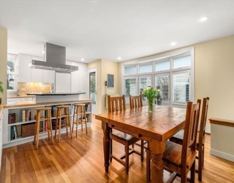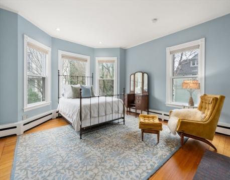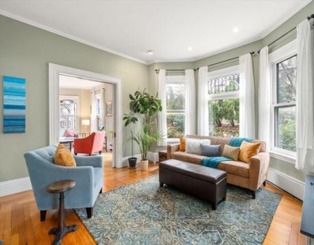 This timeless Victorian preserves its architectural beauty with a grand roofline, elegant windows, and intricate trim, while offering thoughtful updates & comfortable flow for modern living. An inviting front porch with stately Ionic columns welcomes you into a traditional main level designed for ease & filled with great natural light. The foyer opens to a spacious living room & versatile adjoining spaces, including a family room that can easily serve as a formal dining room, plus a flexible den ideal for a music room, office, or library. The main level also features a convenient half bath and a large, sleek open kitchen with dining area & mudroom. Step out to a private deck overlooking a flat, fenced backyard with mature plantings. The 2nd floor offers a generous landing, 3 large bedrooms, two baths, and laundry, while the 3rd floor provides exceptional flexibility with 2 bedrooms, a den & bonus space. Ideally located near Underwood School, just minutes to the Mass Pike & express bus.
