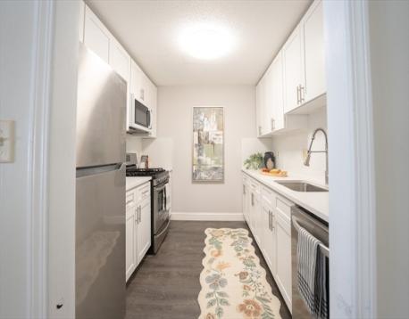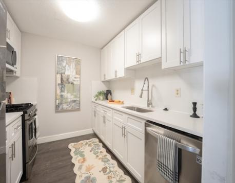 Spacious penthouse filled with abundant natural light, featuring a newer heating and central A/C system, wood flooring, and a brand-new kitchen with gas cooking, stainless steel appliances, and brand-new cabinetry. Open-concept living and dining areas offer southeast-facing sunlight and access to a private enclosed balcony. The primary bedroom includes a walk-in closet, with four total closets providing excellent storage, and a newly partially upgraded bathroom. Condo fee includes professional on-site management, heat, hot water, water, and sewer. Enjoy summer amenities such as a swimming pool, tennis courts, outdoor Weber grills, bike storage, landscaped grounds, and ample parking. Move-in ready with easy access to I-93, I-95/128, Routes 125 & 495, shopping, commuter rail, and nearby Hillview Golf Course.
