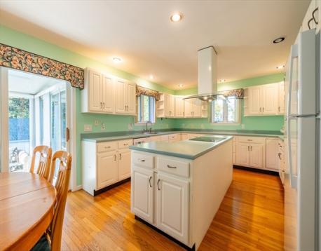 CHARMING & INVITING RAISED RANCH IN A DESIRABLE NORTH READING NEIGHBORHOOD! This 3-bedroom, 2.5-bath home offers comfortable living with a bright and inviting layout. The open-concept living and dining area features hardwood floors, a large picture window, and sliders leading to an enclosed porch perfect for relaxing or entertaining. The kitchen boasts hardwood flooring, recessed lighting, and a center island—ideal for everyday living. The spacious primary suite includes hardwood floors, a walk-in closet, and a private full bath. The finished lower level provides a flexible bonus room and an additional bedroom—perfect for guests, a home office, or a playroom. Enjoy the outdoors from the enclosed porch overlooking a lovely yard with a fruit tree and storage sheds. With an attached 2-car garage and convenient access to shopping and public transportation, this home is ready for its new homeowner. DON’T MISS YOUR OPPORTUNITY TO OWN THIS WONDERFUL NORTH READING HOME!