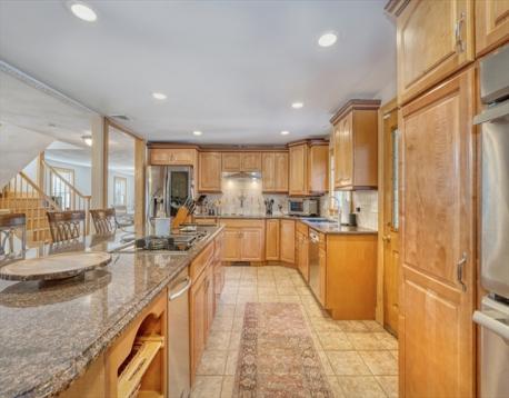 Located in the coveted Chestnut Village, this 5,100 sq. ft. home features 5 bedrooms, 5 baths, and 4 fireplaces. The gourmet kitchen includes a 10' island with a grill, fryolator, and wok burner, and opens to a spacious dining room and great room with a floor-to-ceiling slate fireplace. The main level also offers a guest bedroom with a private bath, a full bath with jacuzzi tub, and a laundry room with a second kitchen. Upstairs, the 1,000 sq. ft. master suite boasts two spacious walk-in closets, gas fireplace, a jacuzzi bath, glass enclosed shower, and dual vanities. The lower level features a home theater/game room, a 3/4 bath, (with in-law potential) and a gym/office with a fireplace. Outdoors, enjoy a built-in pool, large patio area, covered kitchen, bar, fire pit, and hot tub. The garage has a lifetime epoxy floor and extra storage. Perfect for entertaining in a premier neighborhood.