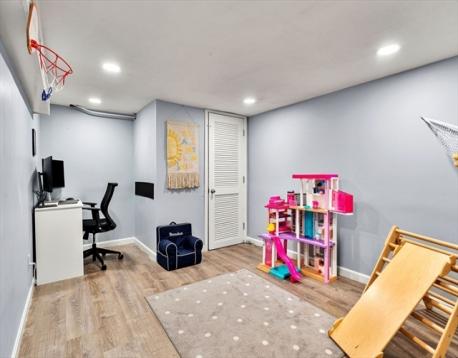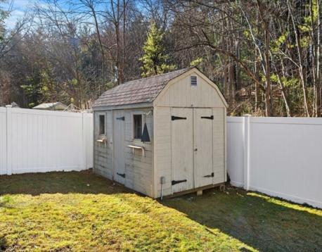 Welcome home to this charming and beautifully maintained Cape, blending modern updates with classic New England character. Step inside the open kitchen offering granite countertops, stainless steel appliances, white cabinetry, recessed lighting, with dining area featuring built-in bench seating and window seat. The connecting sunroom provides additional flexible space for an office or den. An inviting cozy living room, first-floor primary bedroom and full bath complete the main level, with two additional bedrooms and a half bath upstairs plus finished lower-level bonus room. Set on a spacious fenced lot, the property features updated siding, a new fence, a carport, and a generous deck with serene wooded views, creating an easy setting for family gatherings and entertaining. Recent updates: refinished hardwood flooring throughout, central air (2018), new gas heating system, hot water heater (2024/2025). Convenient to Batchelder school, town common and IRP. This is the one to call home!