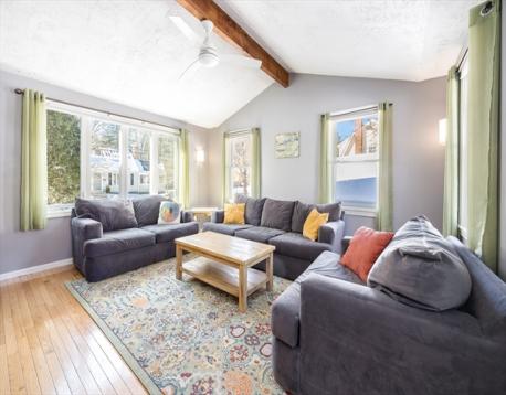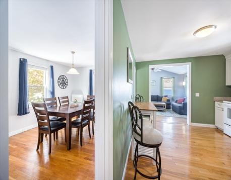 Charming cape-style home on desirable Pleasant Street in North Reading MA offering incredibly flexible living space. This well-maintained North Reading single-family home features three bedrooms plus a bonus room, ideal for a home office, guest space, or flex room. The sun-filled living room showcases a fireplace with custom built-ins, creating a warm and inviting focal point. The kitchen opens to the dining area and a cathedral ceiling family room, perfect for everyday living and entertaining. The finished basement includes a versatile playroom, offering additional space for recreation, hobbies, or a media area. Two full bathrooms provide convenience, while the layout blends classic New England charm with functional living space. Situated on a generous lot with a beautiful yard and one-car garage, this home offers great outdoor space and curb appeal. This Pleasant Street home is a rare opportunity in one of North Reading’s most sought-after neighborhoods.