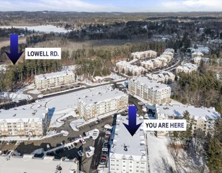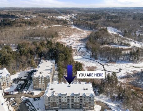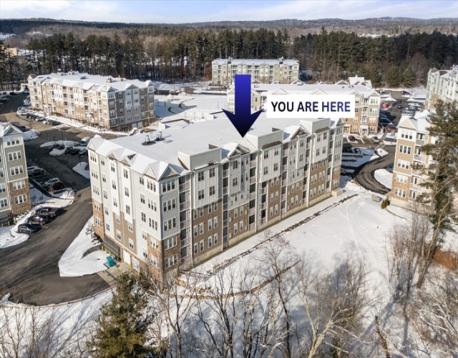 Exceptional value at this price point, showcasing the full suite of developer-offered upgrades (see feature sheet). DEEDED GARAGE PARKING (#6) with elevator access. Brand new in 2023, this meticulously maintained CLAREMONT-STYLE home in a premier 55+ community delivers low-maintenance single-level living. A private south-facing balcony OVERLOOKS PROTECTED CONSERVATION LAND, creating a serene, tree-lined backdrop with EXCEPTIONAL PRIVACY. The open layout features a kitchen with stainless steel appliances, a NEW refrigerator, a den behind French doors with dual closets, and a bedroom with a walk-in closet and soft, upgraded carpeting. In-unit laundry room with storage! Central air, forced-air gas heat, and a low HOA fee. Bedroom chandelier and dining table with chairs gifted to the buyer. Near major highways, 20 minutes from Boston, with easy access to New Hampshire, beaches, and lakes. Amenities offer a clubhouse, fitness center, gathering spaces, and walking trails! Option to RENT!