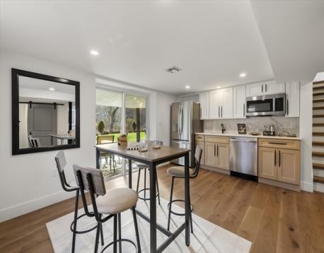 Beautifully renovated home in desirable North Reading, known for its top-rated schools and welcoming community. The first floor features an elegant open concept with a stunning kitchen, dining, and living area — perfect for entertaining. The primary suite is conveniently located on the main level, offering comfort and privacy. Upstairs includes two spacious bedrooms, a full bath, and a dedicated office. The fully finished walkout basement is ideal for entertainment, featuring a wet bar, full bath, and lounge area opening to a covered patio and fire pit space. Thoughtfully updated with high-end finishes, this home combines functionality and style in a prime location — ready to welcome you home.
