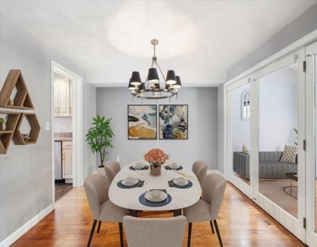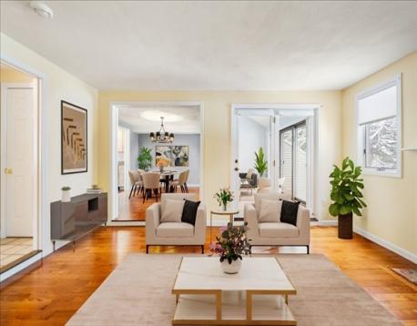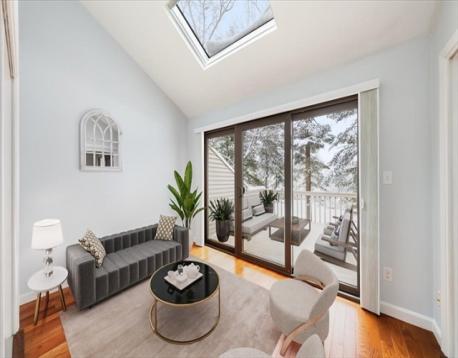 Welcome to The Greens at North Reading! This spacious 1,620 SF Townhouse opens to a towering foyer leading to 2 bedrooms, 2.5 baths, and an open-concept layout ideal for modern living. The sun-filled living room with hardwood. features French doors to a bonus room (office), and also flowing into a dining area and well-appointed eat-in kitchen perfect for entertaining. The office has ample light with a skylight and French doors pouring into a large deck. The kitchen has stainless steel appliances and near the 1st floor laundry room. The primary suite includes ample closet space and a full 2 room bath . Additional highlights include an unfinished lower level with expansion potential, in-unit laundry, central air, garage parking, and beautifully maintained and manicured grounds. Enjoy low-maintenance living in a sought-after golf course community close to shopping, dining, schools, and major routes.