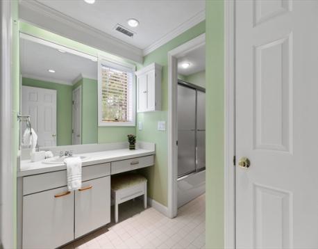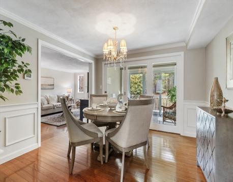 Impressive STAND-ALONE TOWNHOME featuring a convenient first floor primary suite including a full bathroom and walk in closet. This thoughtfully designed layout balances functionally and ease of single level living with attached two car attached garage and laundry on the main level. White designer kitchen with gorgeous granite counters, GE Cafe appliances, built in extra storage space for the home chef including a pantry closet. Thoughtfully designed breakfast/island with pendant lights to match the chrome hardware for more working space or enjoying your coffee in the morning. Spacious dining room featuring wainscotting and crown molded ceiling -perfect for special gatherings-flows seamlessly into the sunroom overlooking a wooded setting. Step out to your private deck to enjoy your outdoor entertaining. Hardwood floors throughout the first floor, enhancing the homes sense of warmth and luxury. The second-floor features two additional bedrooms and a full bathroom.
