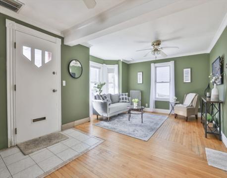 Great opportunity for first time homebuyers or downsizers located on a nice residential street! This charming colonial is in a great location close to parks, schools, and downtown Peabody! The 1st floor consists of an oversized living area open to a large foyer entry, half bath, and eat-in kitchen with pantry. The 2nd floor offers a spacious primary bedroom with 2 double closets, good size second bedroom, and full bath. Fenced backyard with a good size deck is perfect for warmer weather! This nicely maintained home also has a detached garage and extra storage in the basement. The neighborhood playground is just across the street and the home is conveniently located to the Salem Commuter Rail and easy access to major highways. Do not miss your opportunity to live in Peabody at an affordable price and enjoy everything this city has to offer!