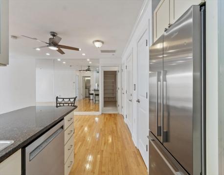 Move-in ready & nicely updated, this desirable single-level condo at Peabody Crossing offers one of the largest floor plans in the community. Freshly painted throughout, the unit features new bedroom carpeting & an open, airy layout ideal for both everyday living & entertaining. The spacious living/dining area showcases hardwood floors, crown molding, a cozy gas fireplace & a seamless flow into the well-appointed kitchen. Here you will find granite countertops, updated SS appliances & a peninsula for casual dining or a quick bite. Thoughtfully designed with privacy in mind, the two bedrooms sit on opposite sides of the main living space. The generous primary suite includes a large walk-in closet, with custom built-ins & a dedicated work space w/a built-in desk. The second bedroom offers easy access to a full bath. Additional highlights include a deeded garage spot w/a storage closet, gas heating, CA, elevator & gathering room. Outdoor parking & easy access to Salem's commuter rail.
