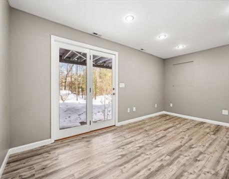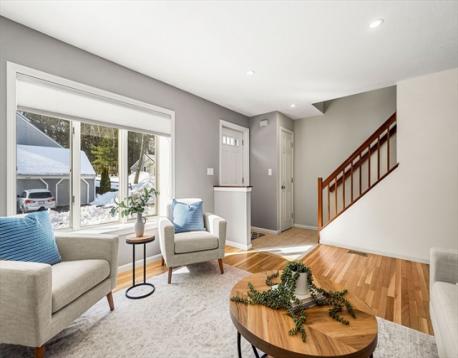 Welcome to 103 Foxwood Circle at Huntington Wood Condominiums! Set within a beautifully landscaped 55 acre community, this Deerfield townhouse offers 4 levels of living space, blending comfort, style and amenities and garage parking. Freshly painted throughout, it features 3 bedrooms, 2.5 baths, and is highlighted by wood and tile flooring throughout, new kitchen cabinets and quartz counters, a new HVAC system and an extended private deck overlooking the tranquil woods. The primary suite includes a flex space ideal for a nursery, home office, workout area or dressing room, allowing you to tailor the space to your needs. The family room, with adjacent patio, offers even more versatility and is enhanced by a convenient wet bar, beverage fridge and 3/4 bath, making it the perfect spot for hosting movie nights, relaxing at the end of the day, or an in-law/teen/au pair suite. Amenities include a beautiful clubhouse, inground pool, tennis and pickleball courts. Easy commuter locale.