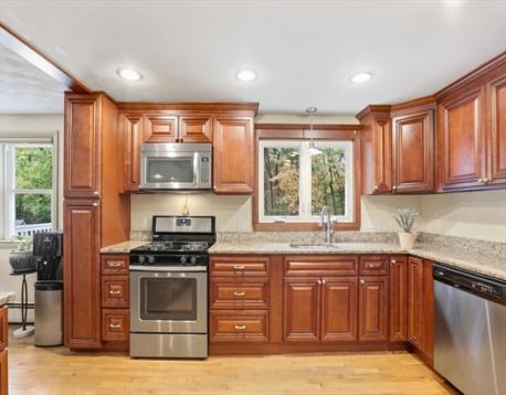 A beautiful updated 4-bedroom 2 bath split-level home. On a small quiet street in South Peabody. Enjoy the large deck overlooking conservation land. The lower level of the home can easily be an in-law apartment. It has Hi efficiency heating system, whole house Emergency Generator, Mitsubishi Air Conditioning Unit system and an outdoor shed with electricity.