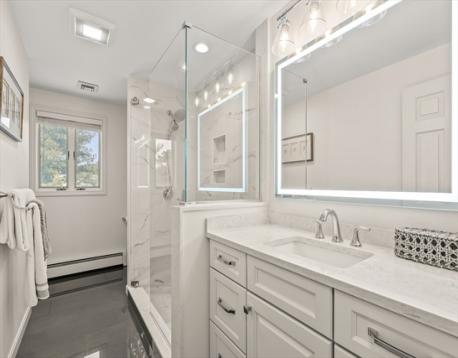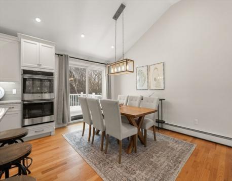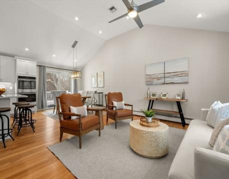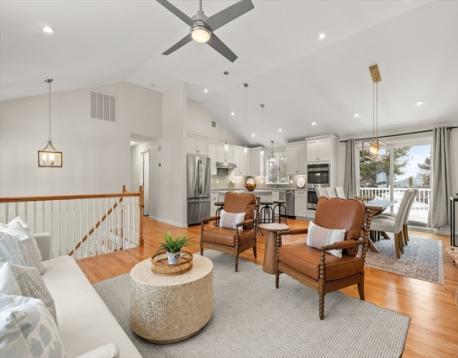 Set in one of Peabody’s most coveted neighborhoods, this fully renovated 3-bedroom home is turnkey and ready to impress. The main level features vaulted ceilings and a bright, open-concept layout perfect for hosting and everyday living. An updated kitchen offers top-tier appliances and an oversized island, flowing seamlessly into the living and dining areas. A porch just off the kitchen overlooks the oversized yard, creating easy indoor-outdoor living with plenty of space to entertain or unwind. Three bedrooms and a spa-like bath adds a polished, modern feel and complete the main level. Downstairs, provides a second living area wired for a projector and sound system, garage access, a full bath, laundry and walk-out access to the patio - ideal for a family room, home office, or easily converted into a guest suite. Convenient to parks, shopping, and major routes, this home blends neighborhood charm with everyday ease.