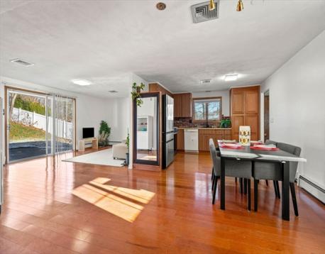 Spacious three-bedroom ranch on an oversized lot in desirable West Peabody with abundant parking and a garage. Enjoy single-level living with an open living/dining/kitchen area featuring large sliders overlooking the patio, fenced yard, and storage shed. A separate side entrance through the garage leads to a back hall with laundry and half bath, opening to a large bonus family room with pellet stove. Two generous guest bedrooms and a full bath lead to the serene primary suite with ensuite featuring double sinks and a large shower. This home offers flexible space, indoor/outdoor living, and room to entertain. Conveniently located near Winona Pond, elementary schools, shopping, Ross Park playground, and offers easy highway access. Don’t miss this opportunity!