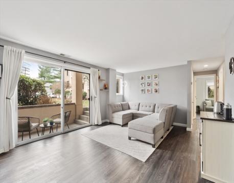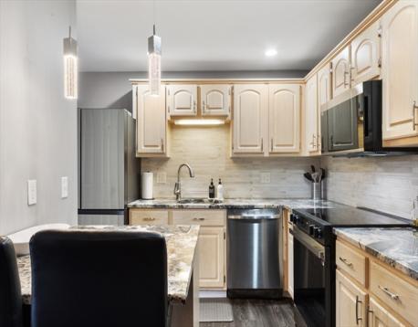 Move in ready FIRST FLOOR unit at Courtyards at Bourbon Street Condominiums! Great location with easy access to major highways, dining, shopping. Nicely updated unit with Allure Ultra Aspen Oak Black Luxury Vinyl Plank floor throughout! Nice open floor plan as you enter the unit to the spacious living room with slider leading to outdoor covered balcony with extra storage. Spacious dining area right off the kitchen. Well equipped kitchen with plenty of cabinetry, stainless steel appliances, granite counter and convenient breakfast bar with added seating. Beautiful full bath with tile flooring, tile shower stall and in-unit laundry closet with storage. Good size bedrooms. Pet friendly complex with restrictions, assigned parking at the door, plus in-ground pool and clubhouse! So much to offer here! Don't miss out on this one!