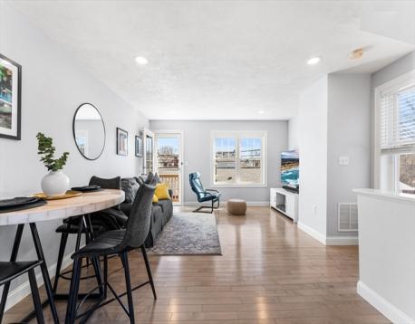 Discover the perfect blend of style and independence in this impeccably maintained, modern townhouse that lives like a single-family home with no monthly condo fees. The interior shines with rich hardwood flooring and an abundance of natural light that pours into a sleek, contemporary white kitchen fully equipped with stainless steel appliances. Convenience is built-in with a private lower-level garage and a versatile adjacent flex room, offering the ideal space for a home gym, workshop, or quiet office. This young construction provides a turnkey lifestyle with shared insurance for peace of mind, making it a rare find for those seeking contemporary design without the overhead of traditional associations. *Subject to sellers obtaining suitable housing.