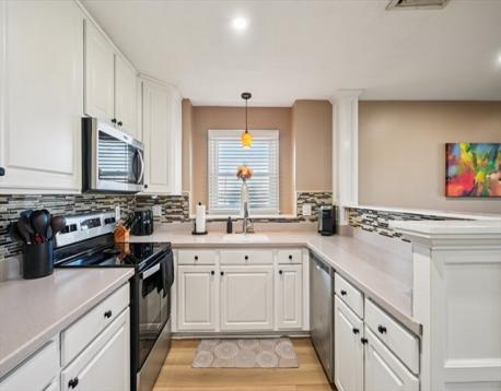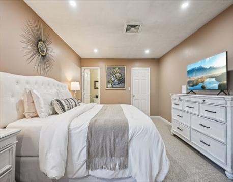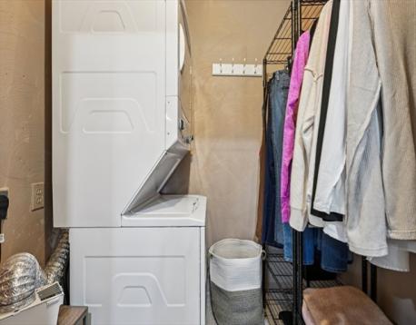 Welcome to a well-maintained and thoughtfully updated home offering a comfortable layout and modern finishes throughout. The interior features luxury vinyl flooring, complemented by carpeting in the bedrooms installed in 2023 and tile flooring in the bathroom. The primary bedroom includes a walk-in closet with the added convenience of an in-unit washer and dryer. The kitchen was remodeled with Corian countertops. Updated appliances in 2022. Additional updates include windows replaced in 2015, HVAC systems replaced in 2018, a walk-in shower, a water heater replaced in 2022, bathroom vanities and fixtures updated in 2023, and recessed lighting installed throughout in 2025. The home also offers two deeded parking spaces and attic storage. A move-in ready home with key updates already in place.