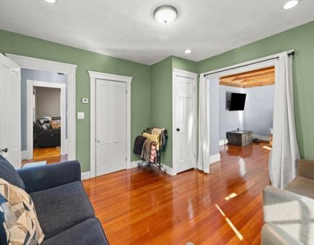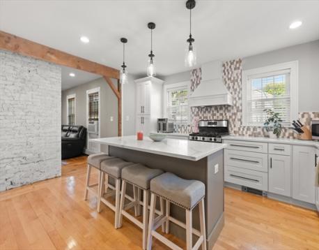 Nothing to do but unpack and enjoy! Blending timeless charm with thoughtful modern updates, this nearly 2,000 sq. ft. home in sought-after South Peabody is just .3 miles to Brown School and .2 miles to Spring Pond Nature Trail. Full of character, it features period details, a newer heating system (2021), and siding (2020). The fenced backyard is perfect for entertaining with a stunning above-ground pool, composite decking (2022), and covered patio. Inside, a cozy family room is anchored by a floor-to-ceiling antique fireplace, while the open kitchen/dining area offers quartz countertops, a large island, gas stove, and stainless steel appliances. A vaulted family room with exposed beams, wood ceilings, and wood stove (2016) flows to the back deck. The spacious primary suite includes a tiled en-suite bath and large closet. With 3 bedrooms upstairs, a flexible first-floor room for office or bedroom, and a full basement, this home adapts to your needs. Come see this South Peabody gem today