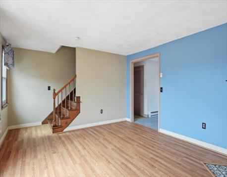 Tired of Rent? Welcome Home to 22 N. Central Street, Unit 5. This 1,000 sq ft, 2 bedroom, 1.5 bath Townhouse w/ garage is part of a small 6-unit Townhouse property. Your main level has a large eat-in kitchen with stainless appliances, half bath, living room w/ pellet stove & rear deck with stairs off the kitchen. The upper level has 2 large bedrooms, a full bathroom, and bonus attic access for additional storage. The lower level comprises a large garage, separate laundry/utility room with plenty of storage. Recent upgrades include upper-level flooring (2020); appliances (2020); and 5 new Anderson windows (2023). Additional assigned parking spot and shared outdoor picnic area. Centrally located less than 2 miles from the North Shore Mall. Perfect location for any commute with easy access to all major routes. Low HOA which includes water/sewer, landscaping and snow plowing services. This is a great opportunity to build equity and stop paying someone else’s bills!
