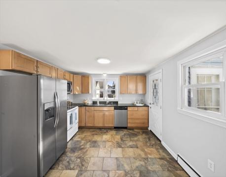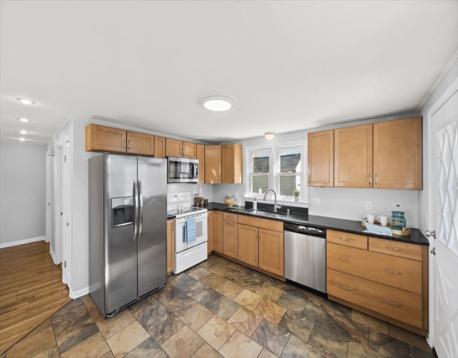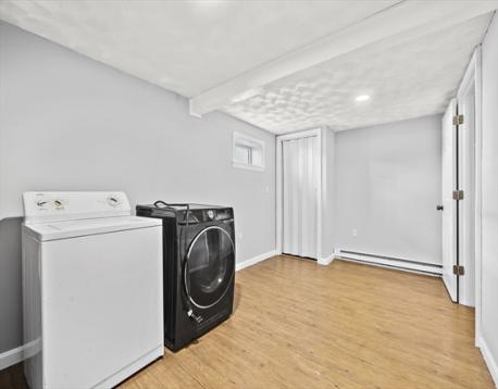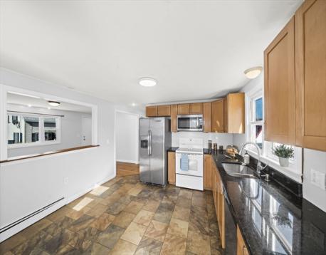 This remarkably spacious saltbox is much larger inside than it appears and offers outstanding flexibility with 4 bedrooms, 1.5 baths, and two driveways. Step into the updated kitchen and flow into the bright, light-filled living room. The main level features not one but two convenient bedrooms—ideal for guests or office space—along with a full bath. Upstairs are the primary bedroom, another bedroom, and a half bath. The fully finished lower level is a major bonus, with space for an in-law suite, guest quarters, or extended living, complete with kitchenette/dining area, bedroom, office, laundry, full bath, and utility room. Enjoy outdoor entertaining on the back deck or in the fenced yard. Municipal water/sewer and baseboard oil heat. Recent updates include a radon mitigation system, reglazed tub, refinished hardwood floors, and freshly painted rooms. Located in Peabody, you’re close to major highways, shopping, dining, parks, medical facilities, and vibrant downtown Salem and Danvers.